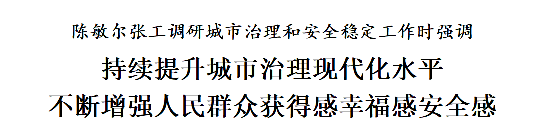 陳敏爾、張工在調(diào)研中強(qiáng)調(diào),要認(rèn)真學(xué)習(xí)貫徹習(xí)近平總書記在中央城市工作會(huì)議上的重要講話精神,深入落實(shí)習(xí)近平總書記視察天津重要講話精神,踐行人民城市理念,強(qiáng)化黨建引領(lǐng)基層治理創(chuàng)新,深化大城細(xì)管、大城智管、大城眾管,著力提升城市治理現(xiàn)代化水平,不斷增強(qiáng)人民群眾獲得感、幸福感、安全感。圍繞籌備上合組織峰會(huì),在周全安全上下功夫,強(qiáng)化問題導(dǎo)向、目標(biāo)導(dǎo)向、結(jié)果導(dǎo)向,提升執(zhí)行力,把握時(shí)度效,落實(shí)工作方案,完善應(yīng)急預(yù)案,健全工作體系,優(yōu)化指揮調(diào)度機(jī)制,全鏈條推動(dòng)各項(xiàng)任務(wù)有序開展。堅(jiān)持點(diǎn)線面網(wǎng)相結(jié)合,抓好社會(huì)面整體防控,強(qiáng)化風(fēng)險(xiǎn)隱患源頭治理,建好管好用好綜治中心,發(fā)展壯大群防群治力量,加強(qiáng)網(wǎng)格化服務(wù)管理,深化矛盾糾紛多元化解,完善城市運(yùn)行保障和應(yīng)急管理體系,嚴(yán)格落實(shí)安全生產(chǎn)責(zé)任制,有力保障全市域、全時(shí)段、全要素安全。深化道路交通綜合治理,加強(qiáng)交通組織和疏導(dǎo),持續(xù)提升交通態(tài)勢感知力、交通擁堵疏解力、交通事件反應(yīng)力,確保道路交通安全暢通。提高信訪工作法治化水平,完善思路舉措,注重分類指導(dǎo),提升信訪干部的群眾工作能力、法律政策水平,增強(qiáng)信訪工作實(shí)效,更好維護(hù)群眾合法權(quán)益、服務(wù)全市工作大局。