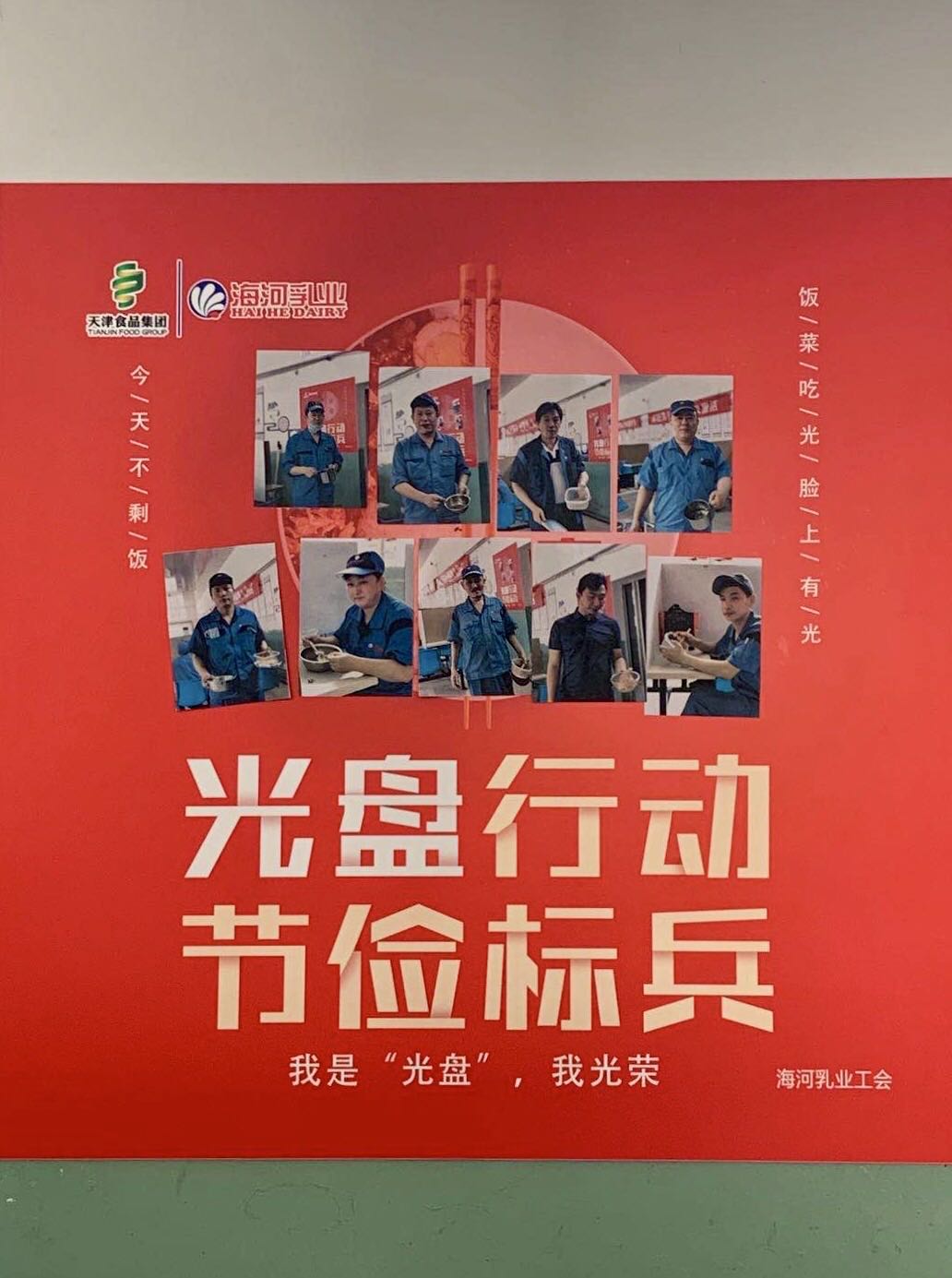 海河乳業(yè)公司工會(huì)向全體職工發(fā)出“厲行節(jié)約、反對(duì)浪費(fèi)”倡議書,從我做起、從當(dāng)下做起,積極踐行“光盤行動(dòng)”,共同營(yíng)造浪費(fèi)可恥、節(jié)約光榮的活動(dòng)氛圍。在公司廠區(qū)和食堂張貼宣傳標(biāo)語(yǔ),在食堂用投影儀播放相關(guān)視頻,利用電子屏滾動(dòng)播放宣傳口號(hào),積極營(yíng)造宣傳氛圍,引導(dǎo)職工樹(shù)立“節(jié)約光榮、浪費(fèi)可恥”的價(jià)值觀,倡導(dǎo)節(jié)儉文明的生活方式。