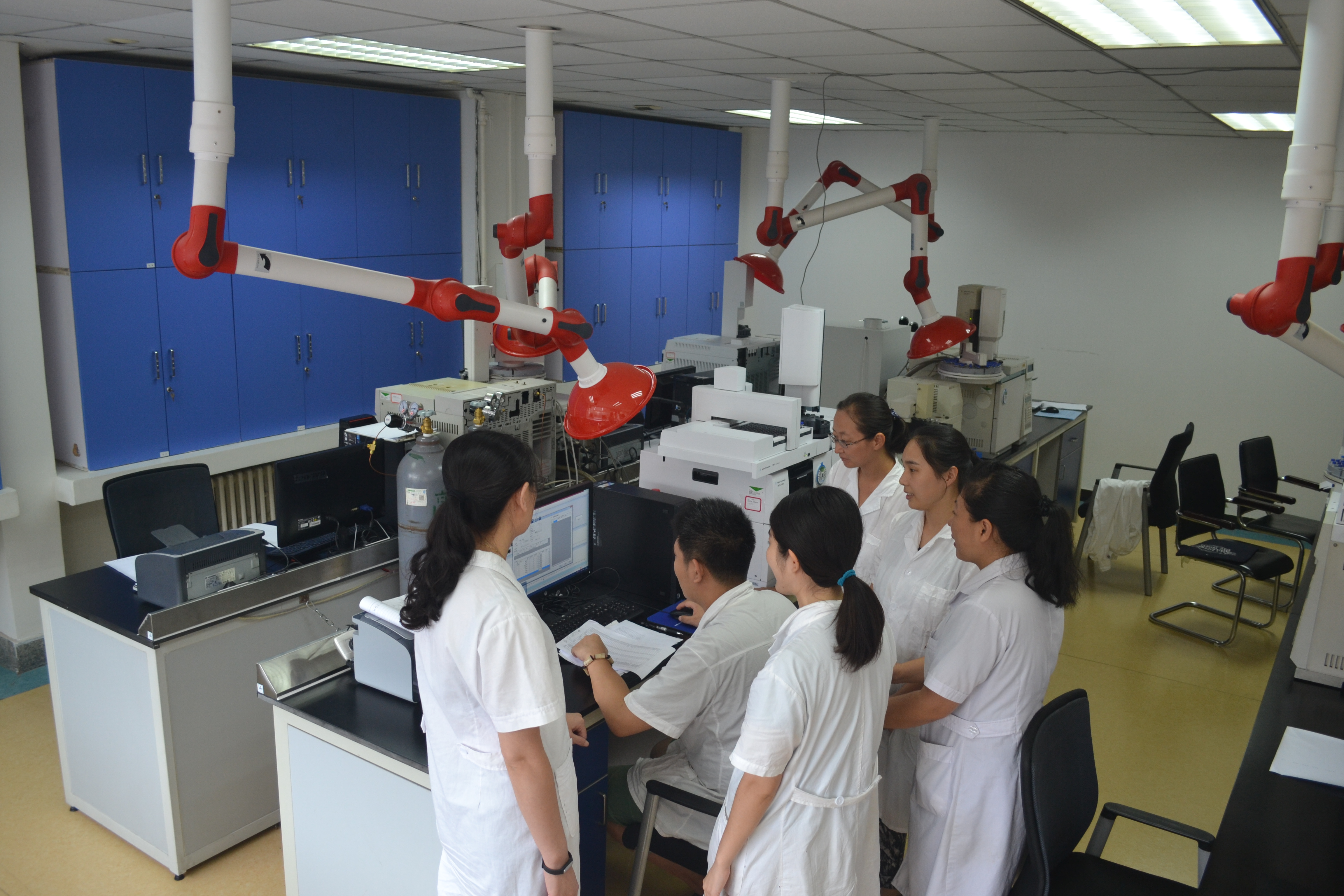 天津市乳品食品監(jiān)測中心現(xiàn)在的分析一室成立于2013年,是在監(jiān)測中心原有部室的基礎(chǔ)上整合而成。現(xiàn)有員工17人,其中包括研究生8人,本科畢業(yè)生9人;3人擁有高級工程師職稱。分析一室現(xiàn)有大型檢測設(shè)備21臺,包括液相、液質(zhì)、氣相、氣質(zhì)、離子色譜等,主要承擔(dān)農(nóng)藥殘留、獸藥殘留、食品添加劑、營養(yǎng)元素等檢測任務(wù)。分析一室擁有中心最先進(jìn)的設(shè)備,代表著中心最高的技術(shù)水平。
