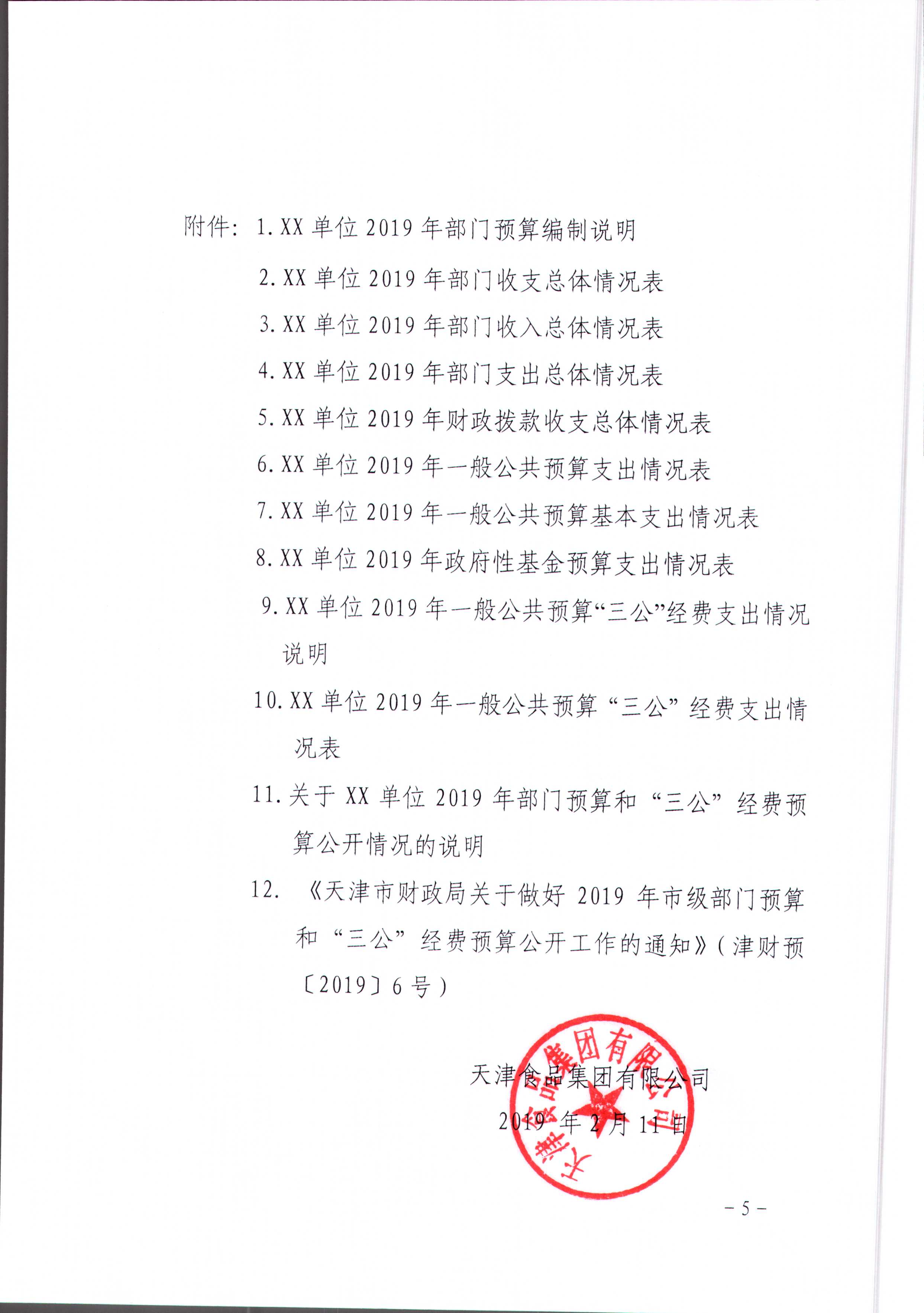 天津食品集團(tuán)關(guān)于轉(zhuǎn)發(fā)《天津市財(cái)政局關(guān)于做好2019年市級(jí)部門(mén)預(yù)算和“三公”經(jīng)費(fèi)預(yù)算公開(kāi)工作的通
